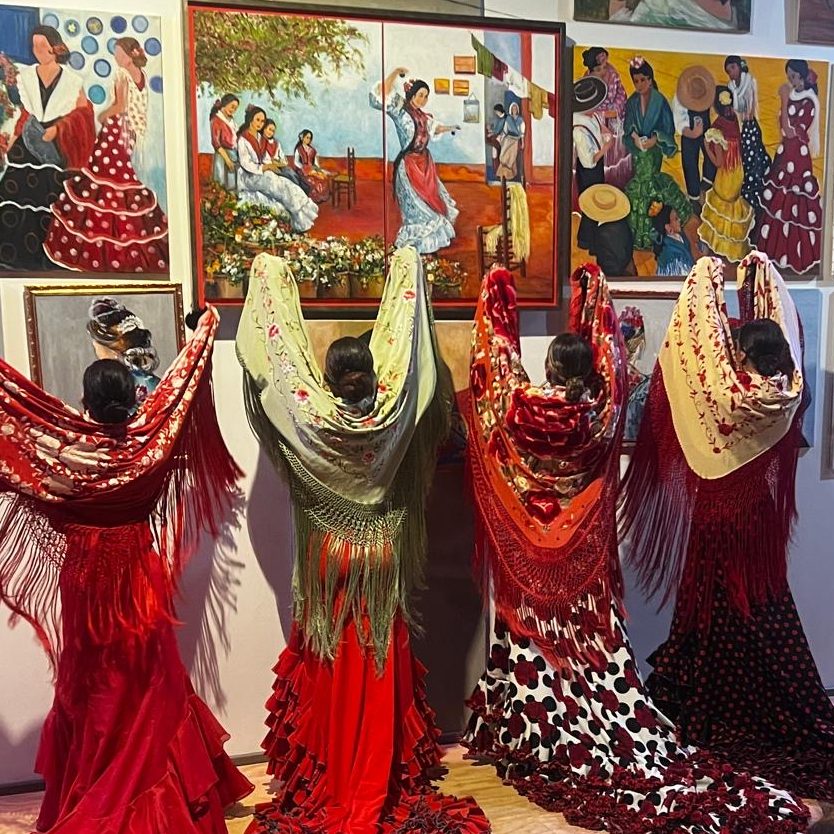 TAMBIÉN TE ENSEÑAMOS A BAILAR CON COMPLEMENTOS, ABANICO, MANTÓN DE MANILA, CASTAÑUELAS, BATA DE COLA, CRÓTALOS Y SOMBRERO.